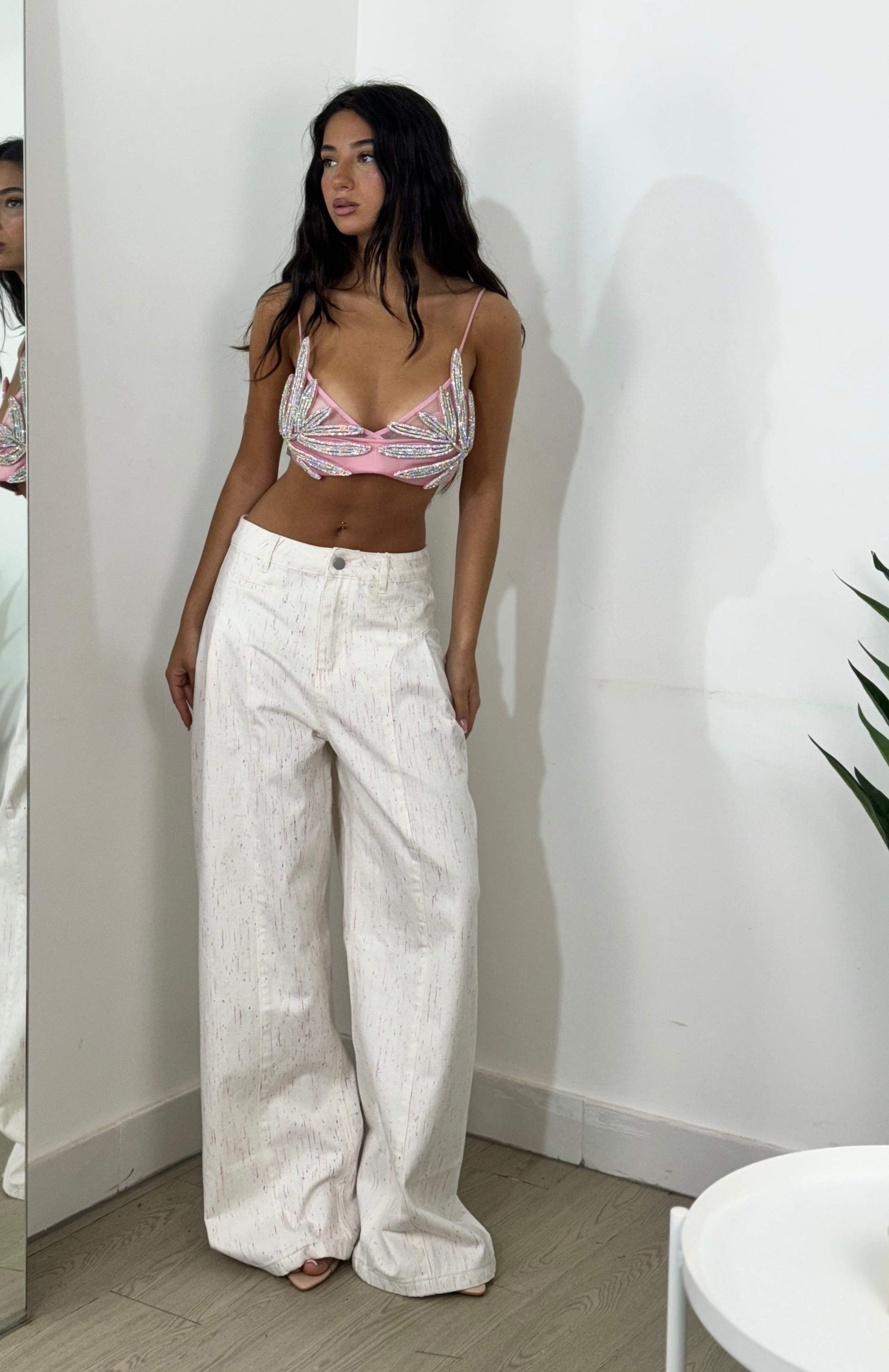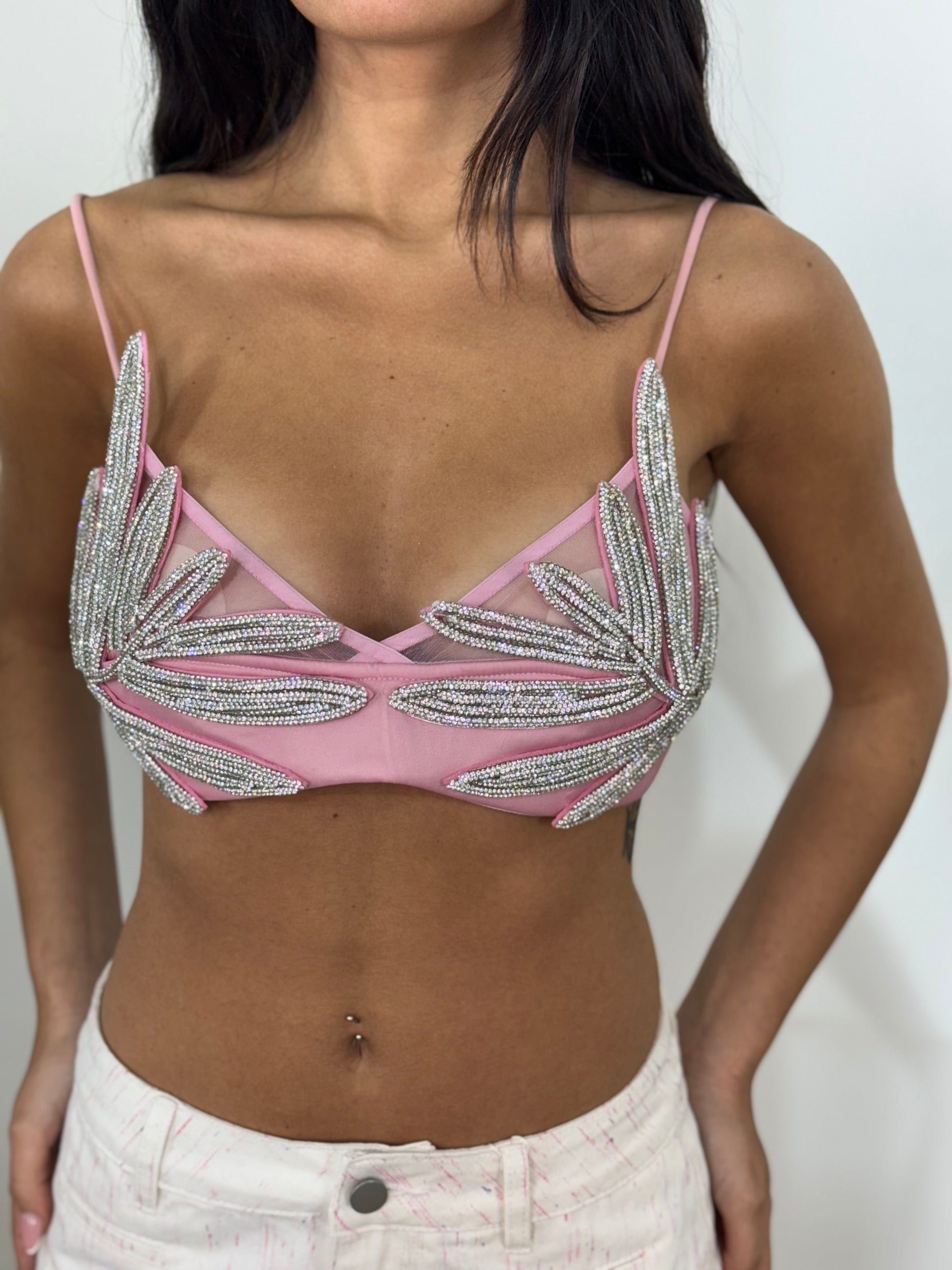 Bralette taglia unica con foglia tempestata di strass