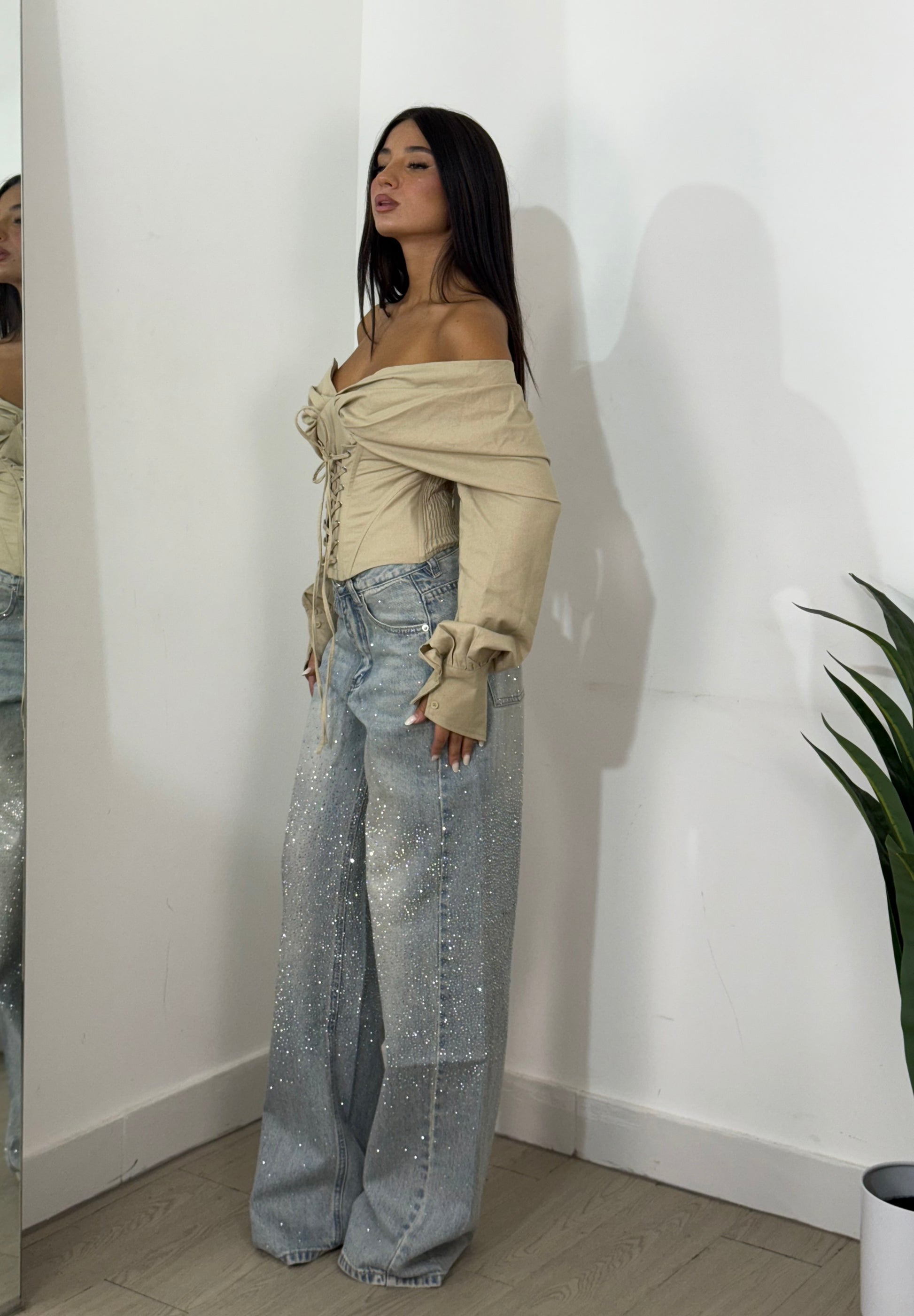 Camicia bustier S/M-M/L, la modella indossa S/M