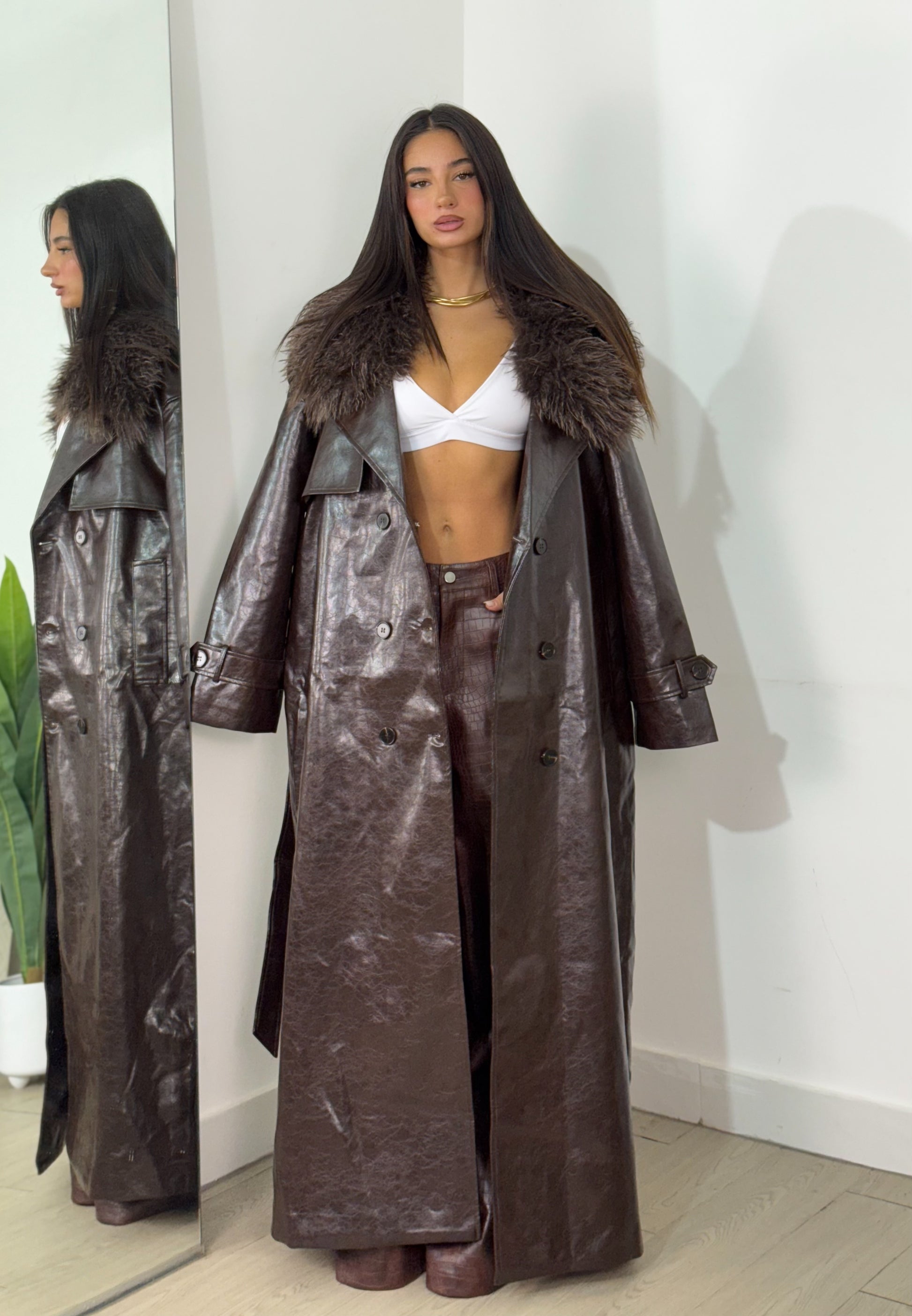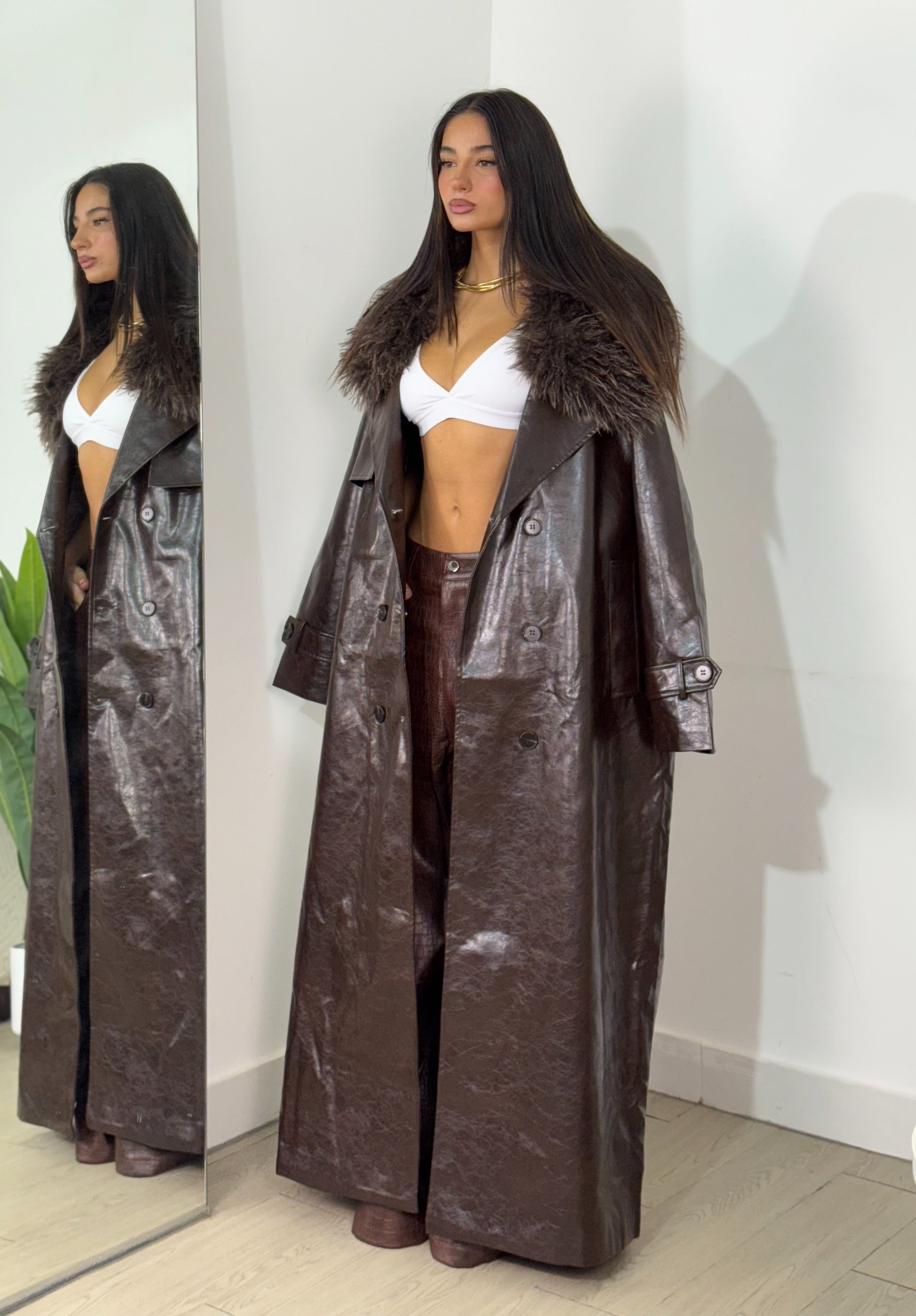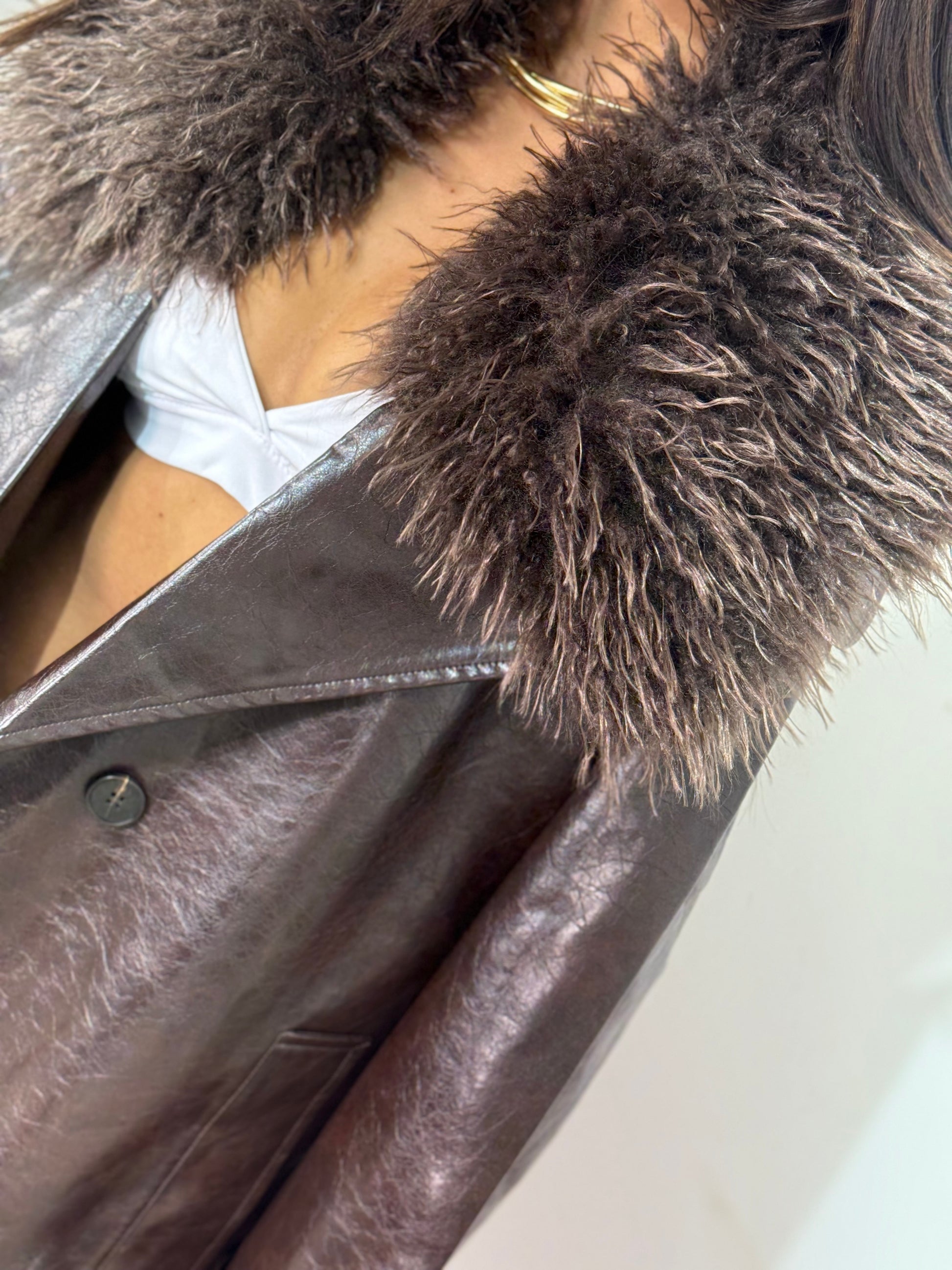 Capotto taglia unica super over con collo con pelliccia