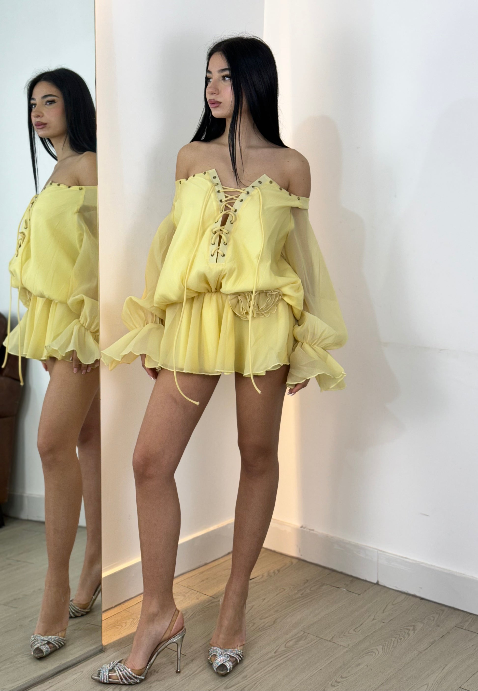 Dress con dettagli rose, taglia unica, lacci sul davanti regolabili