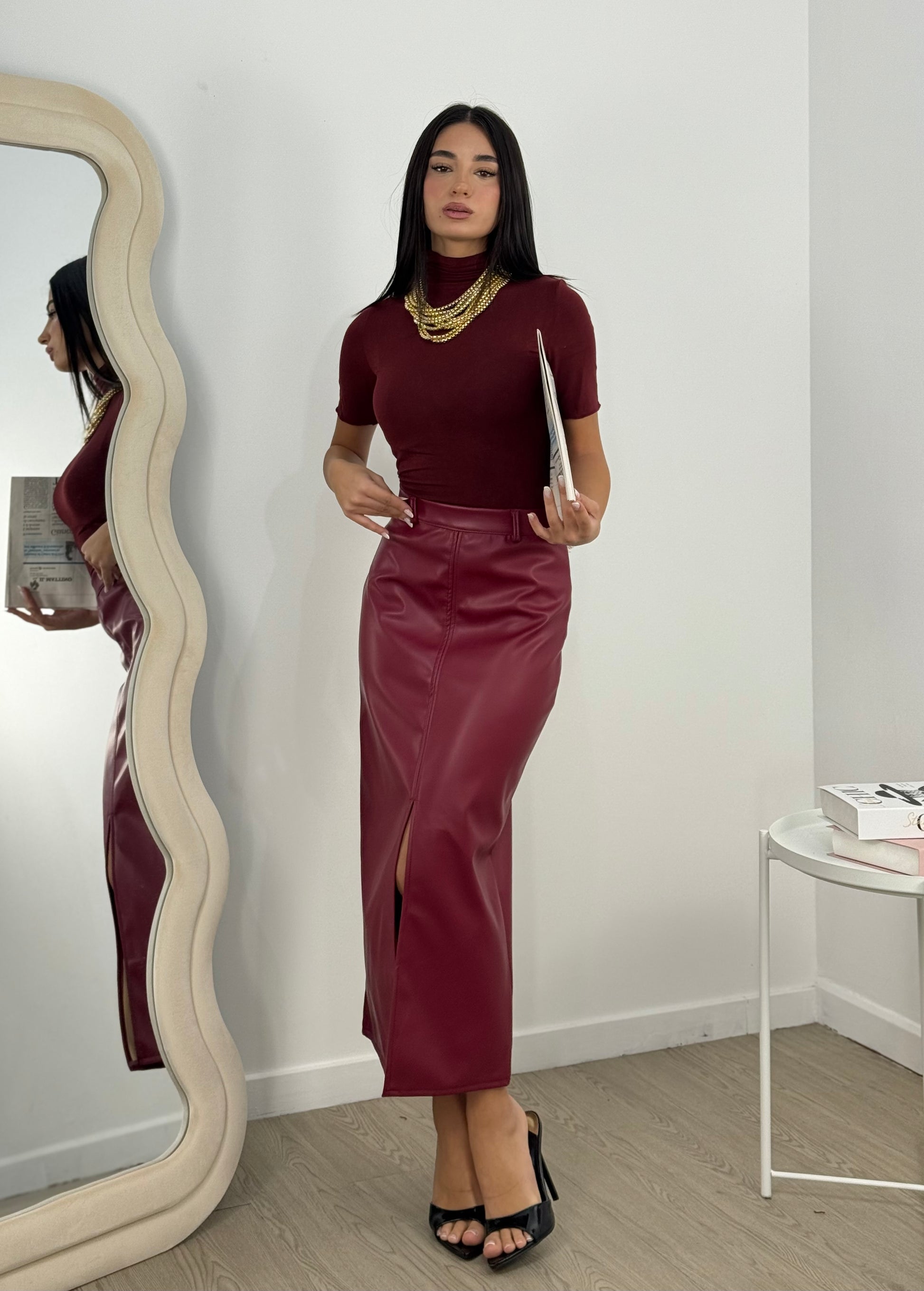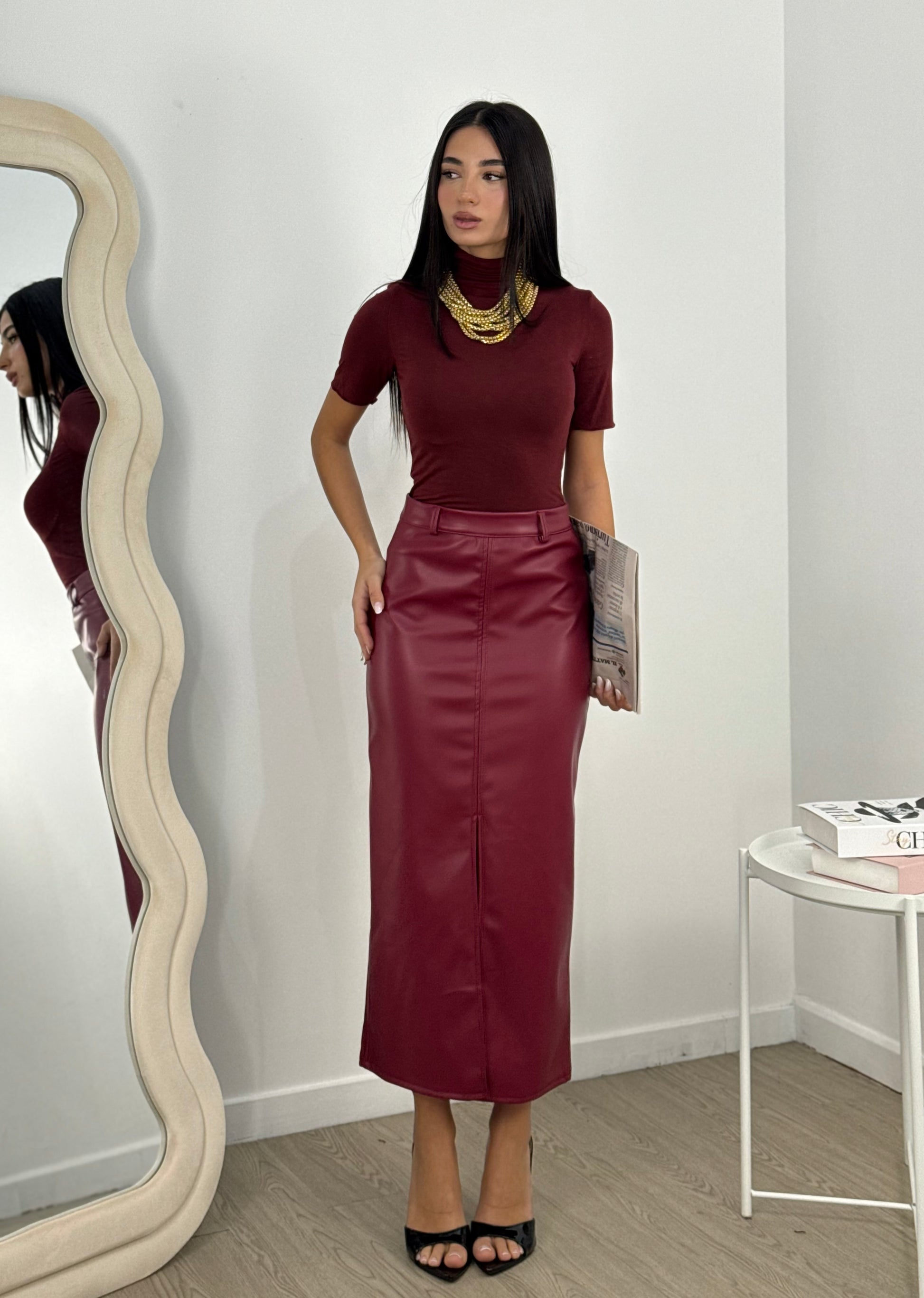 Gonna in ecopelle SML, la modella indossa S, calza regolare