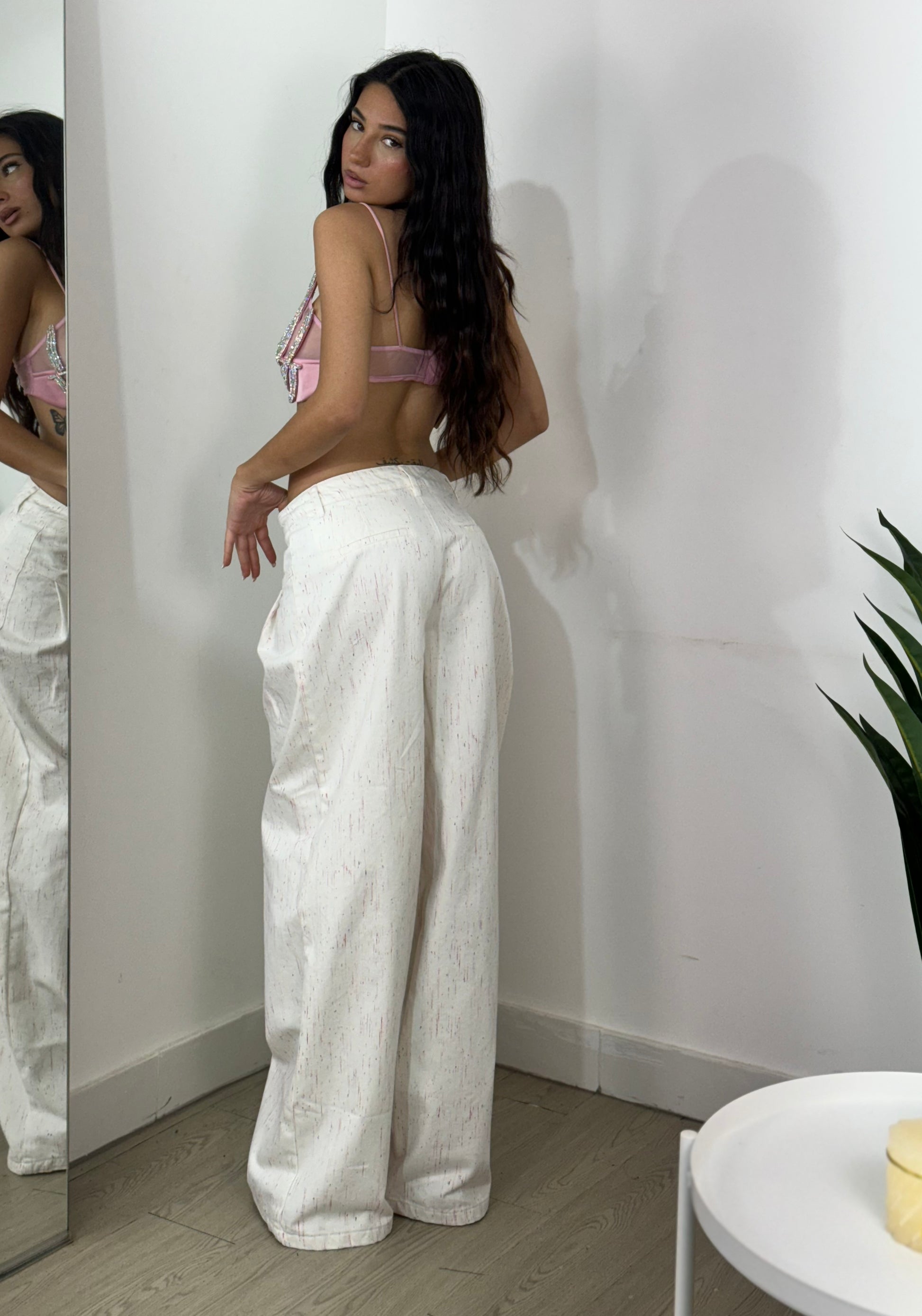 Jeans SML, la modella indossa S, se si vuole l’effetto over prendere una taglia in piu