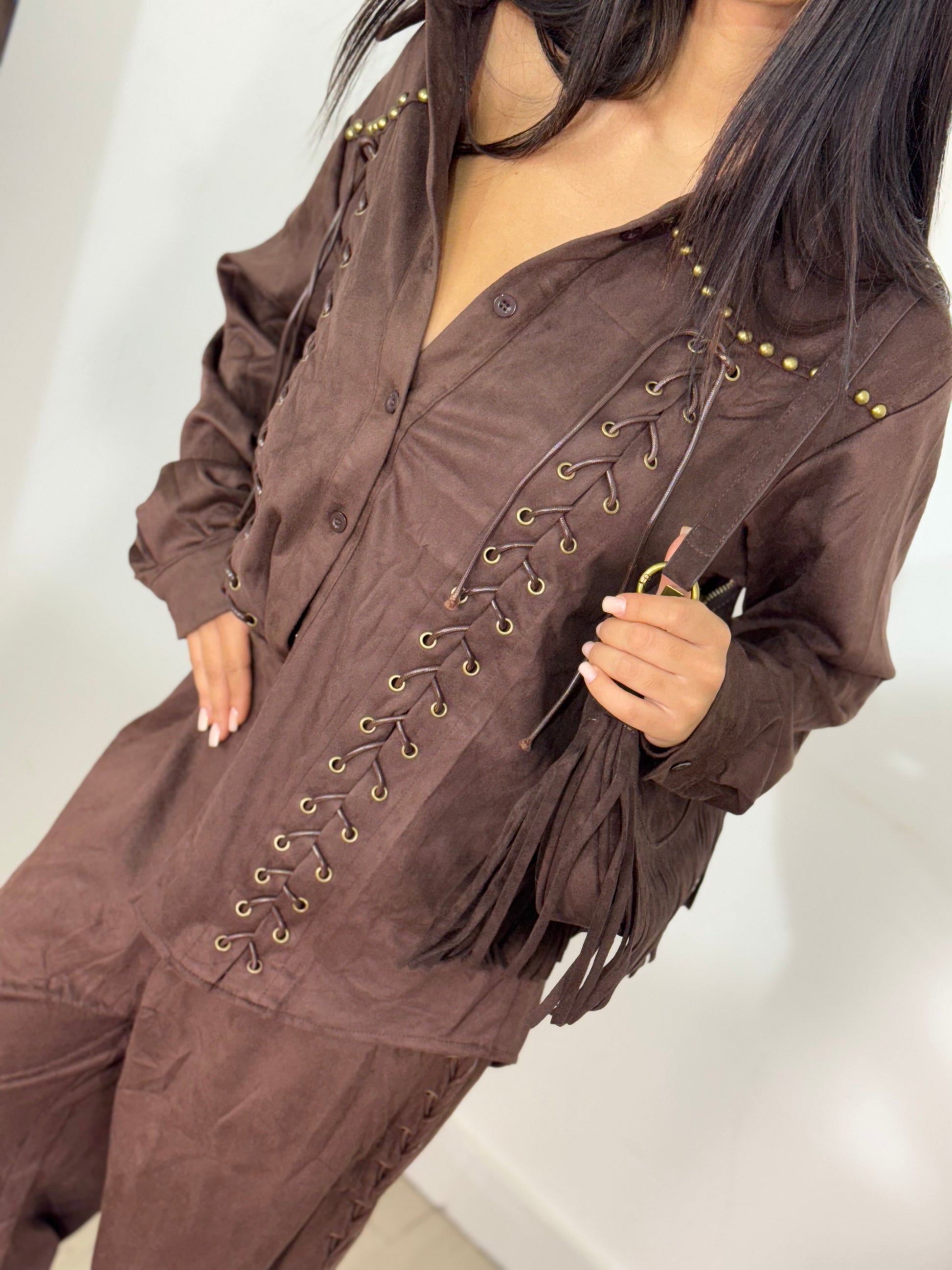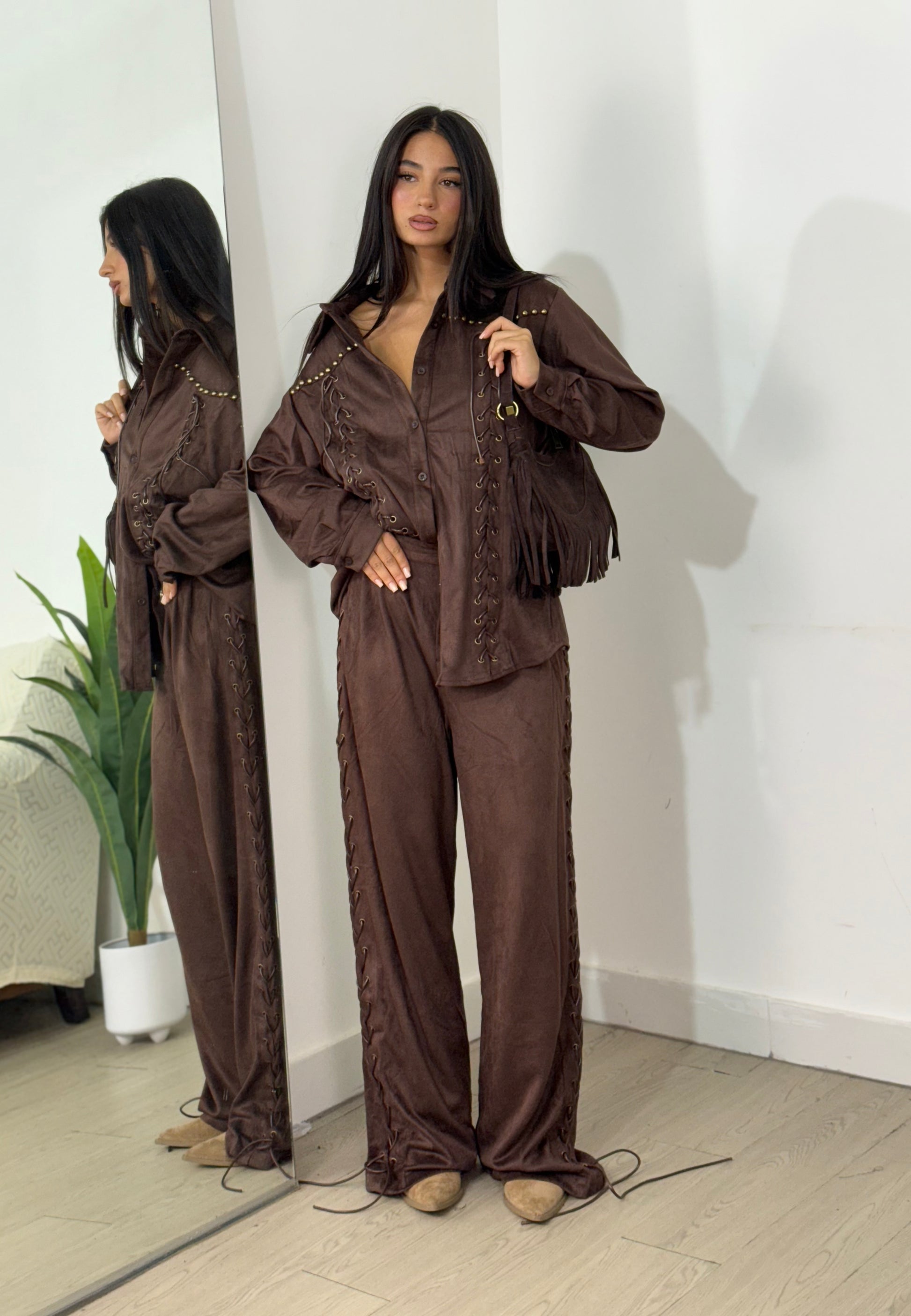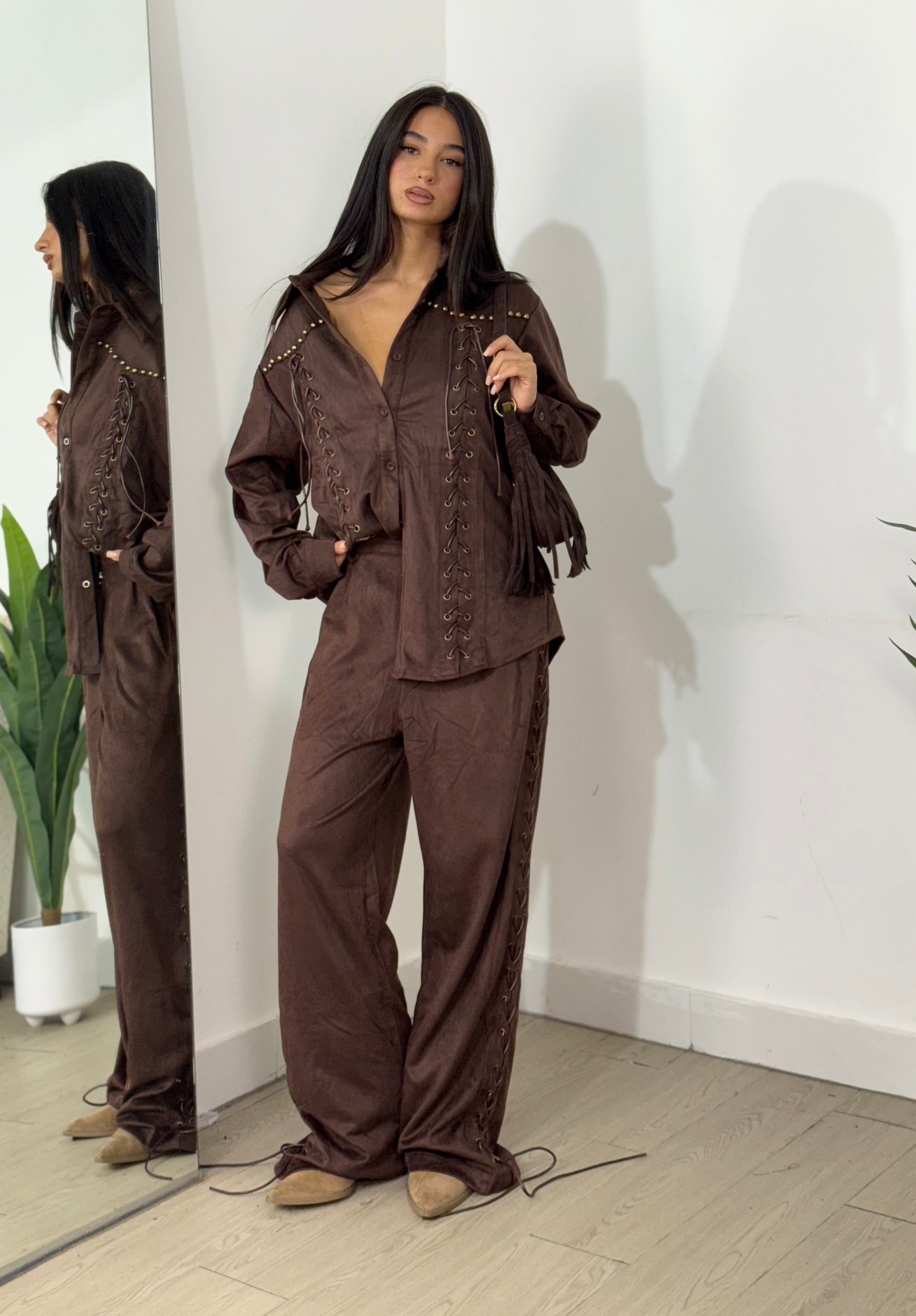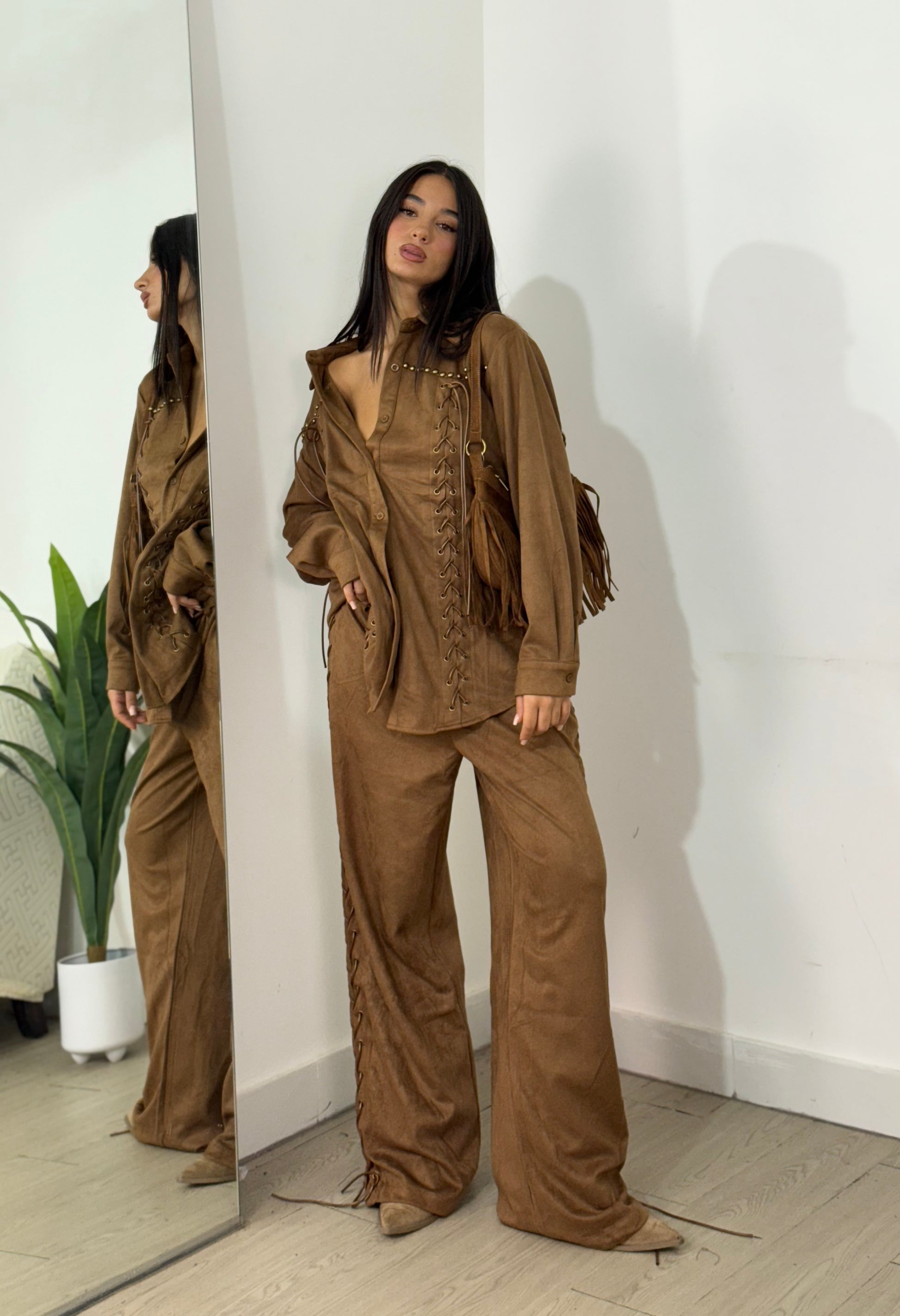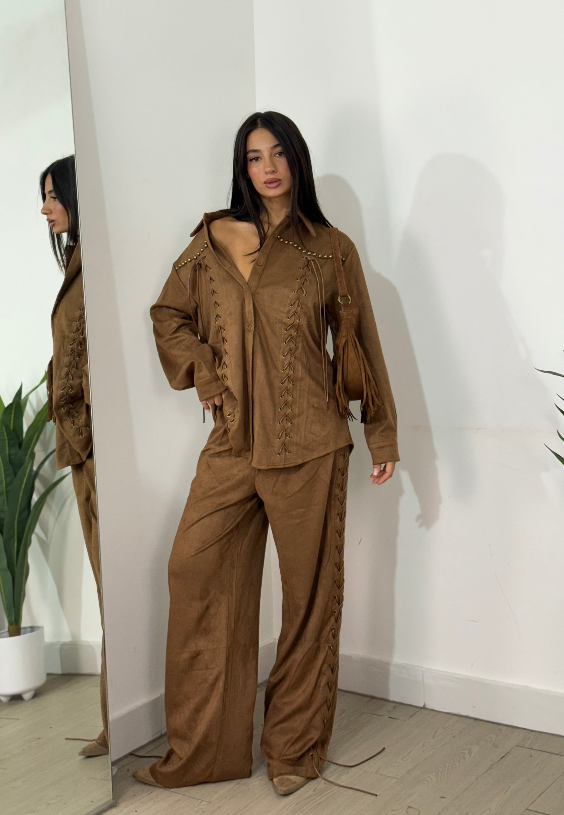 Set giacca più pantalone in camoscio taglia unica
