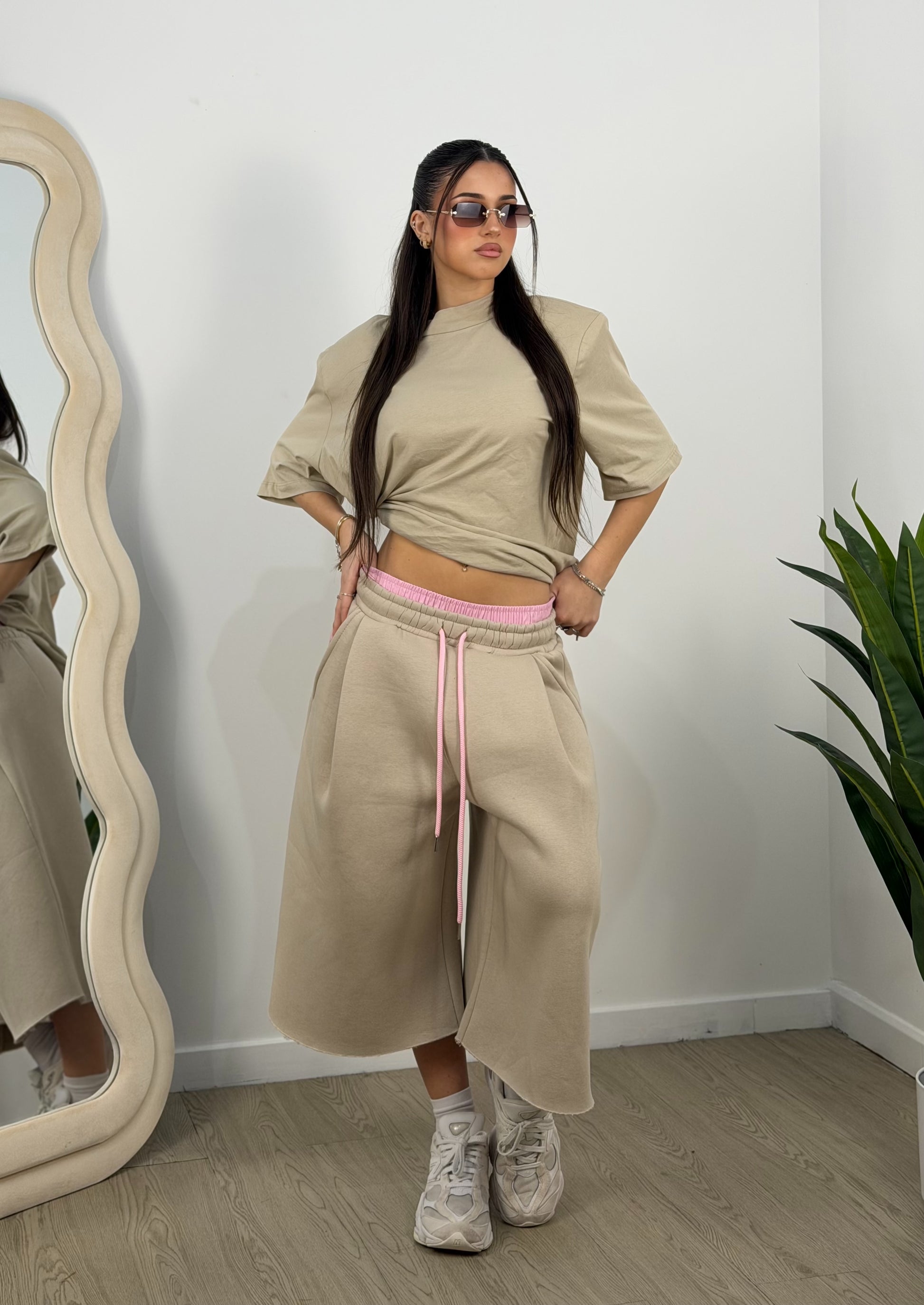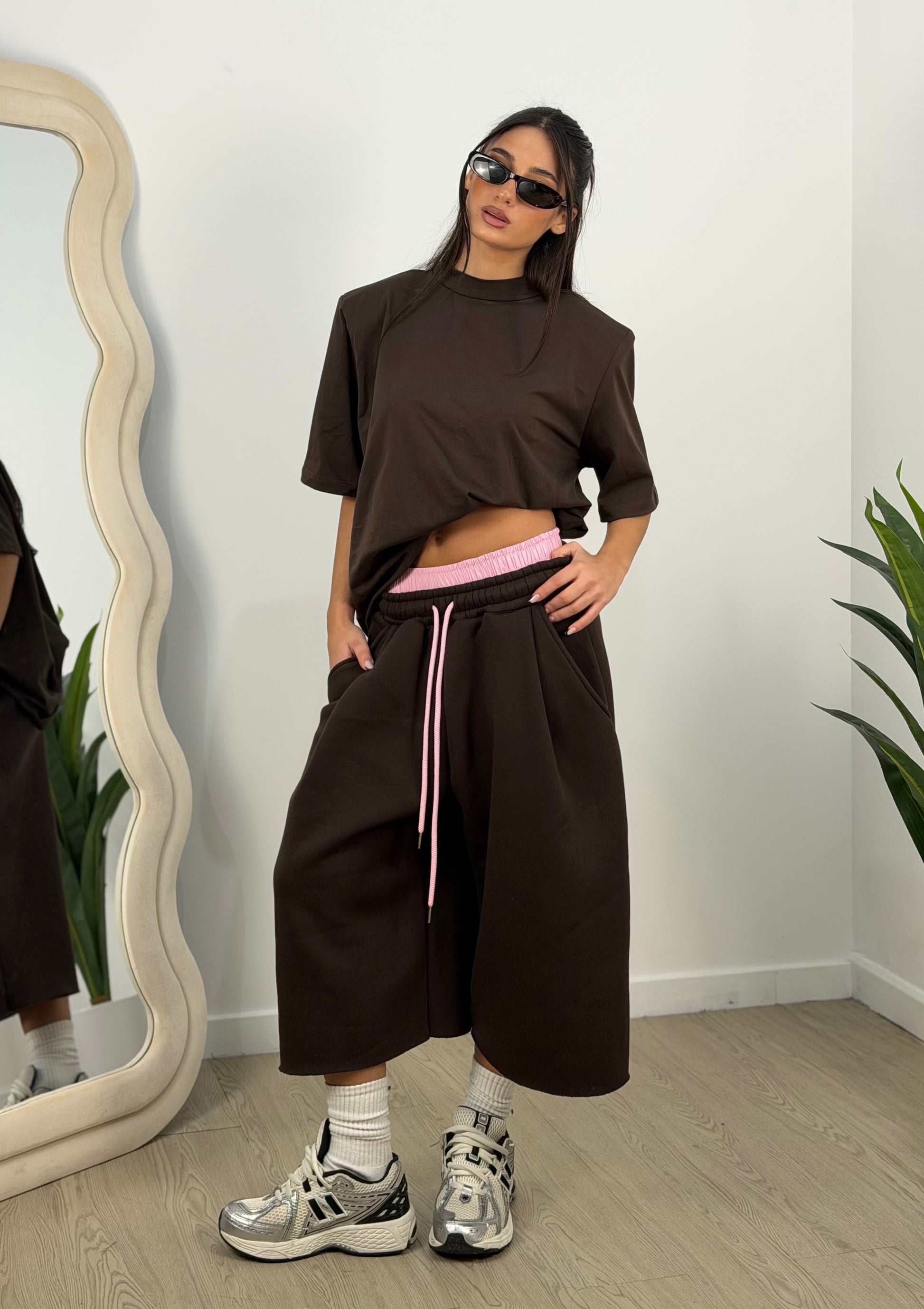 T-shirt super oversize con spalline in spugna taglia unica
